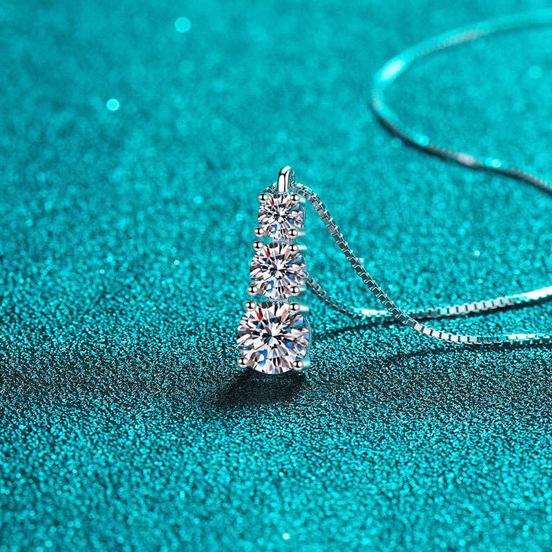 Three Stone Moissanite Charm Necklace in 925 Sterling Silver