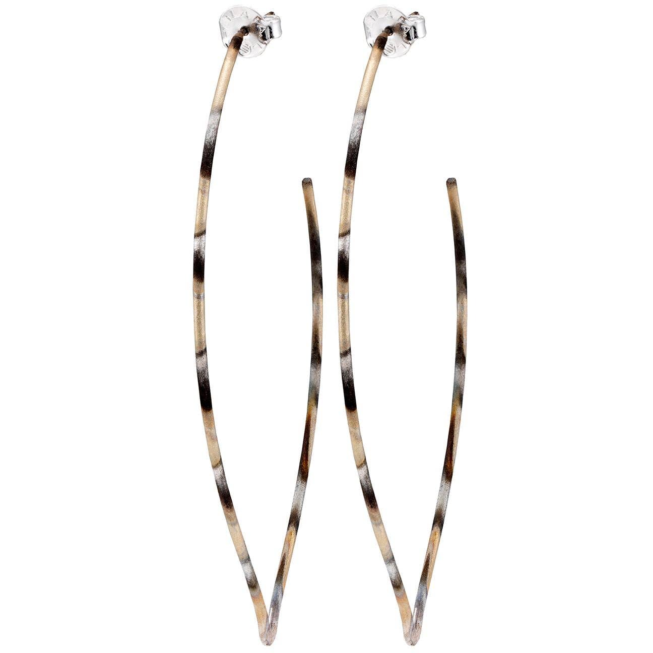 Handmade in Brazil. These long leaf shaped thin squared tube hoops will add a touch of nature inspired beauty to your collection. So light, you will forget you are wearing them!